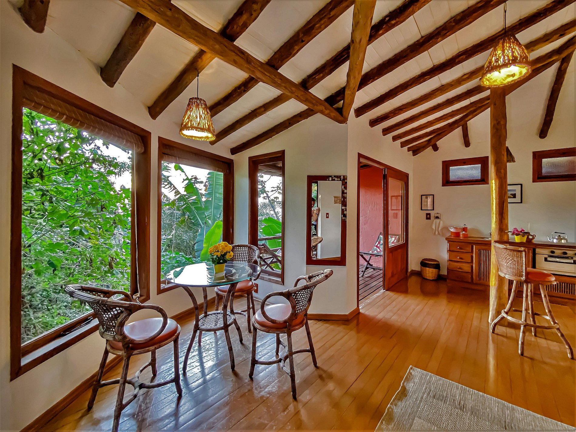O Studio Luxo faz parte da Pousada Studios do Barão, localizada no Caminho do Rei, um dos pontos mais privilegiados da Praia do Rosa, a 450 metros do centrinho e igual distância da beira do mar. Tem 56 m² de área e localizado em terreno de 4000m² totalmente arborizado com mata nativa, oferece todo o conforto da vida moderna, assim como tranquilidade e privacidade em meio à natureza. É ideal para receber casais de bem com a vida, mas aceita até três pessoas com comodidade. Nosso espaço é ao mesmo tempo rústico e moderno, preservando as características naturais da Praia do Rosa porém dotando as cabanas de todo o conforto e últimas conquistas da modernidade. Nossa localização privilegiada favorece tanto o acesso ao mar quanto ao "centrinho" da praia.