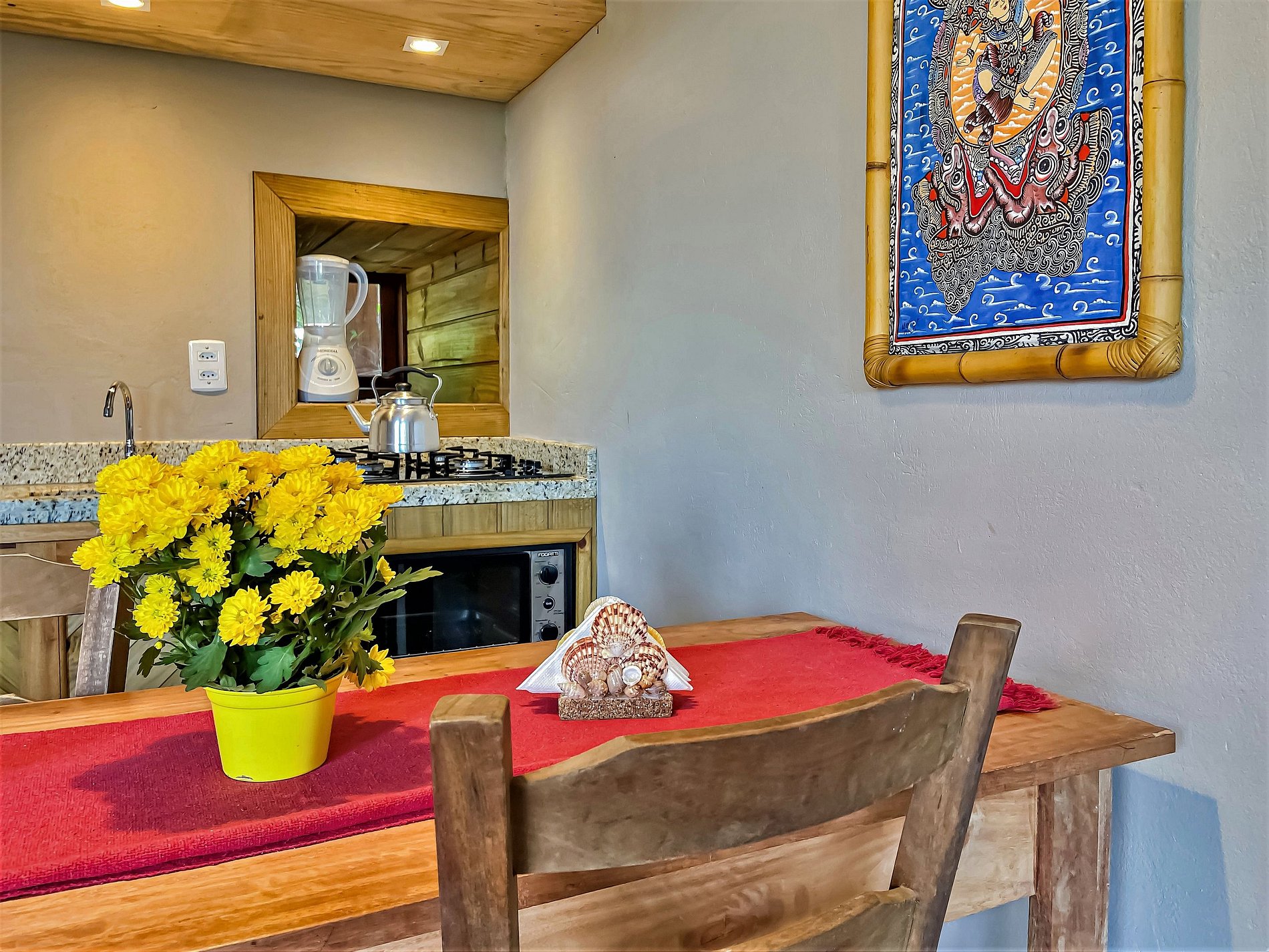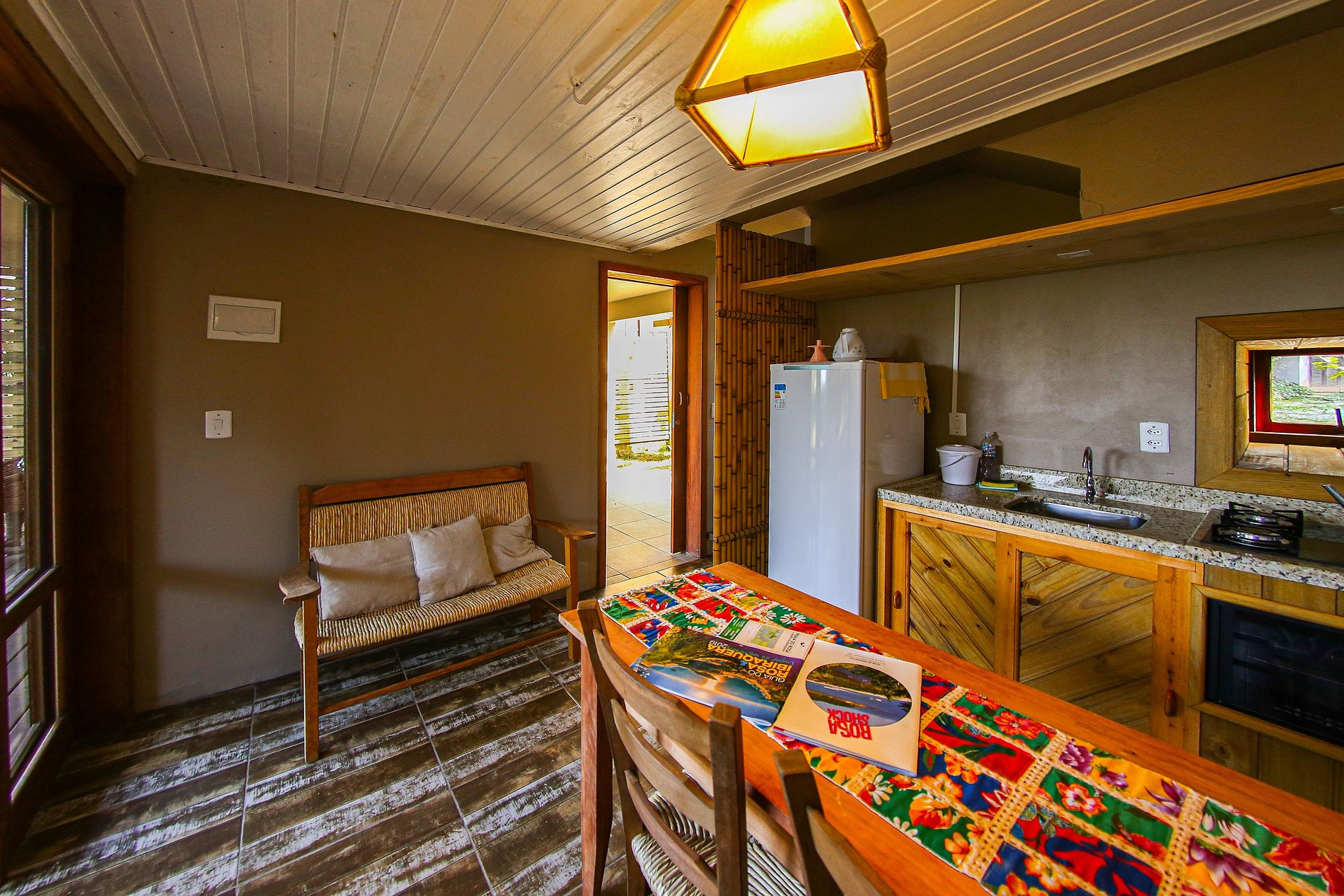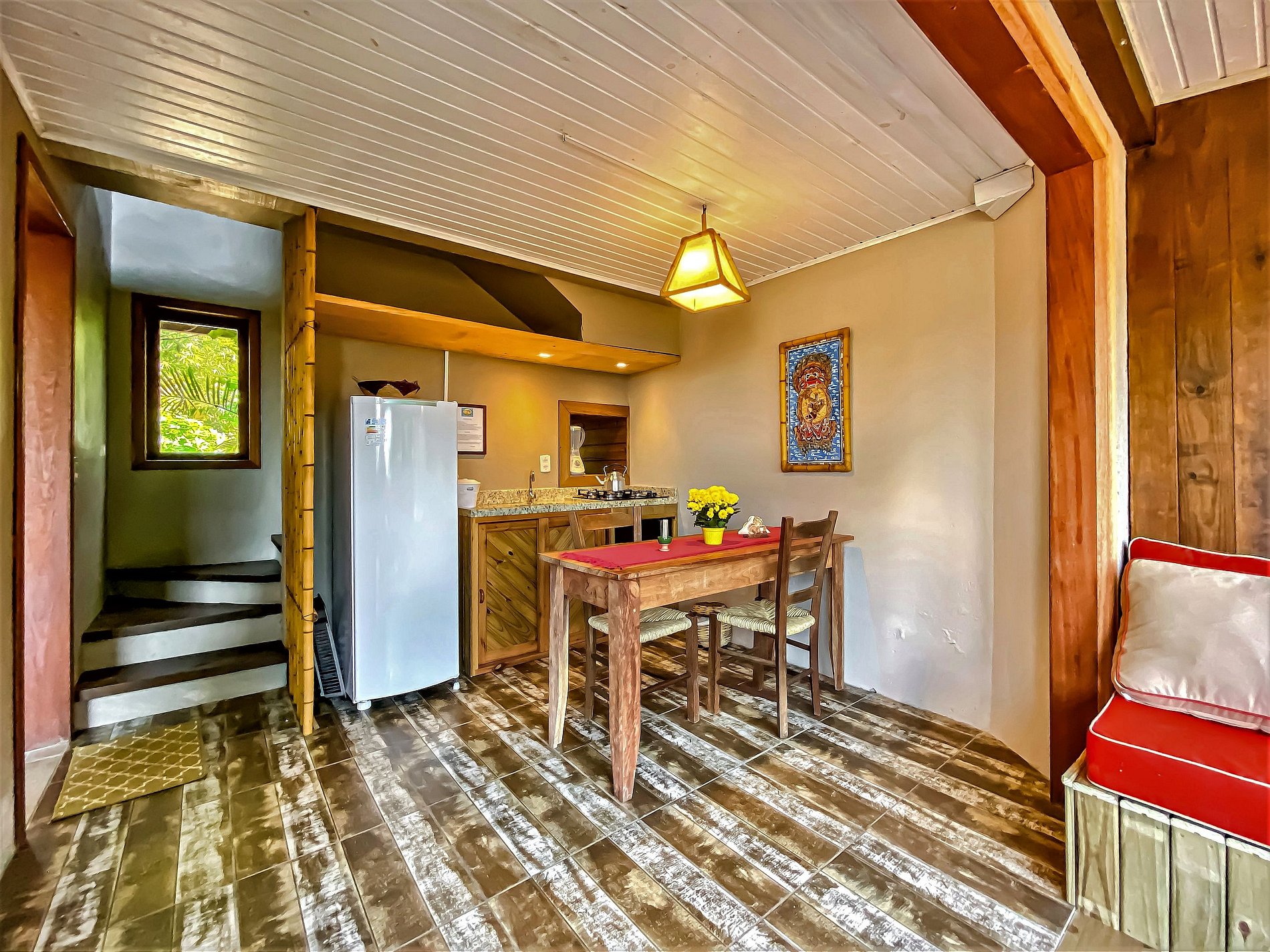 Studio completo com dois andares, o Studio Tavarua possui todos os equipamentos necessários para o seu bem estar além de garagem para o carro, portão eletrônico para maior segurança e fácil acesso à piscina e demais pontos da pousada.