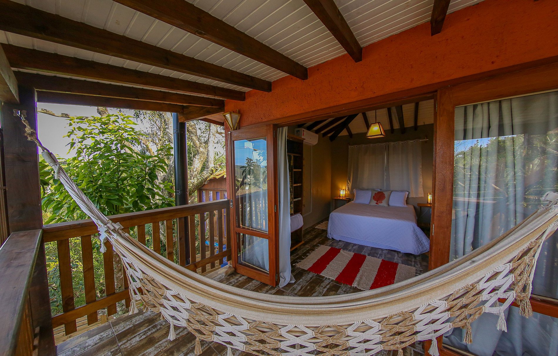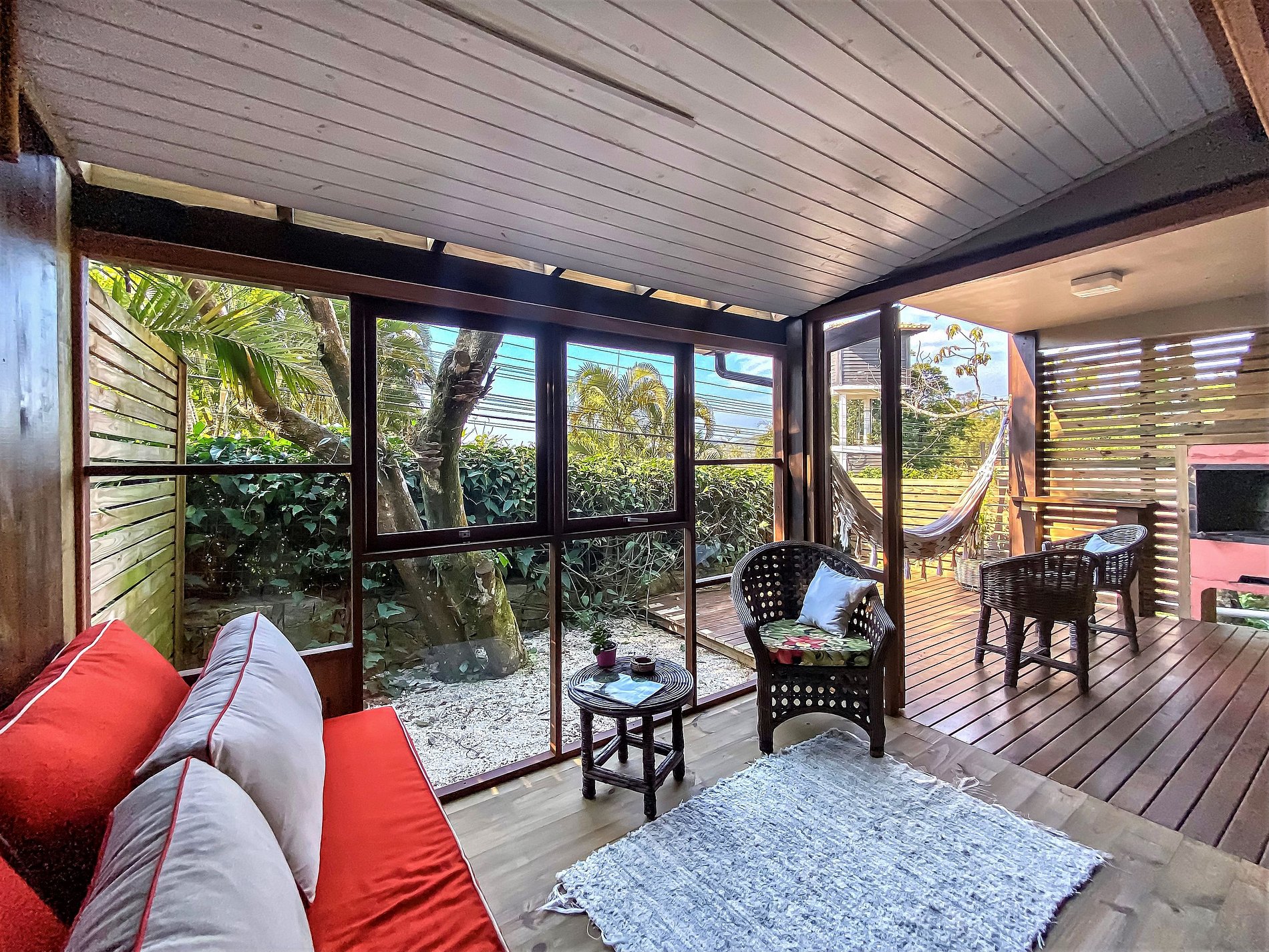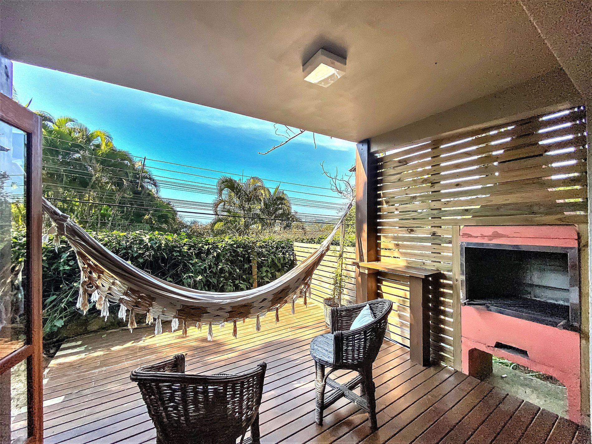 O Studio Tavarua é um duplex pensado para receber exclusivamente casais. No andar superior tem um amplo quarto com varanda com rede e vista para o mar, cama queen size, ar condicionado e TV Smart, e banheiro com banheira de hidromassagem, chuveiro a gás central e secador de cabelos. No térreo tem garagem coberta para o carro, cozinha completa, living e deck com rede e churrasqueira.