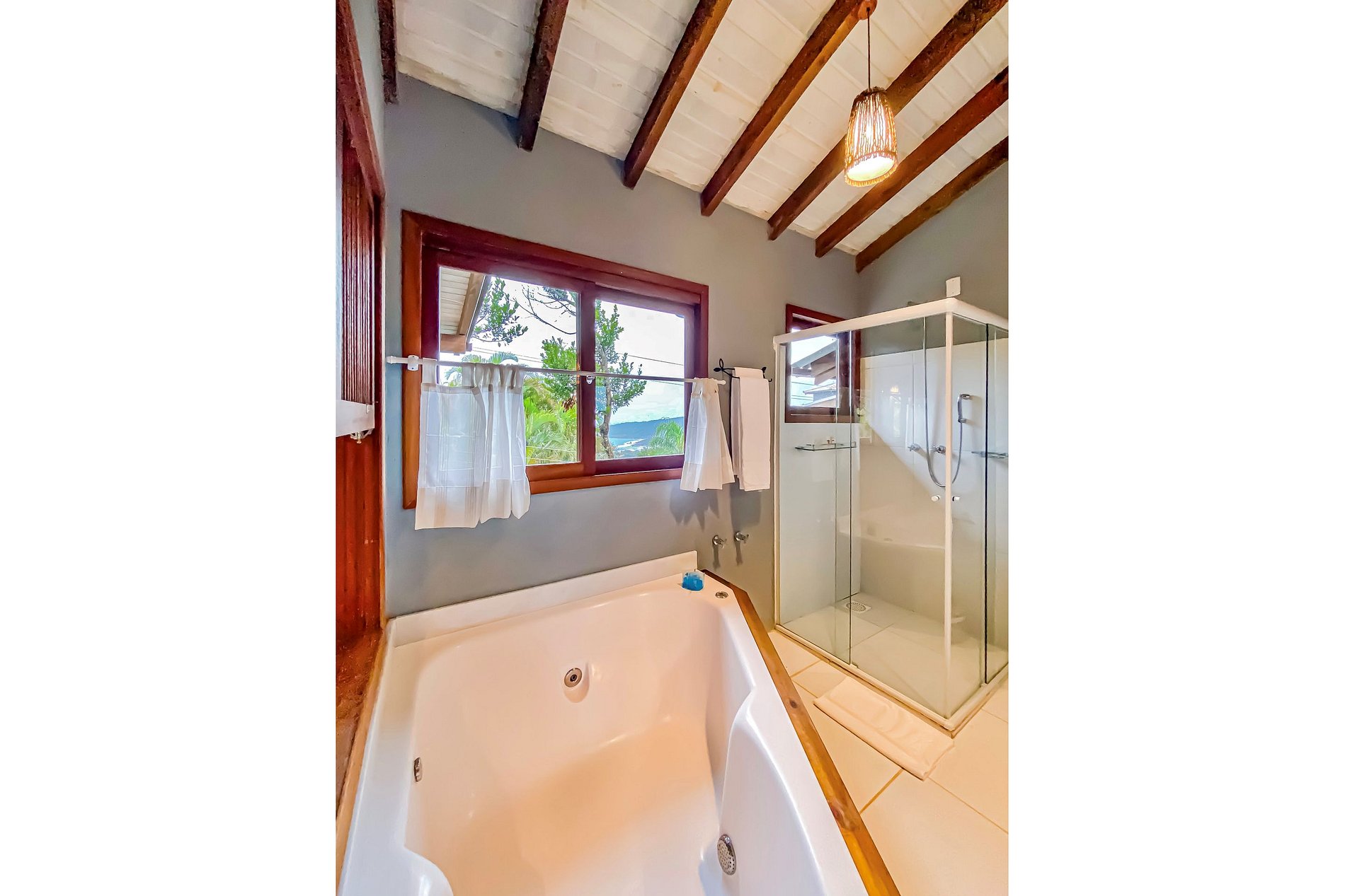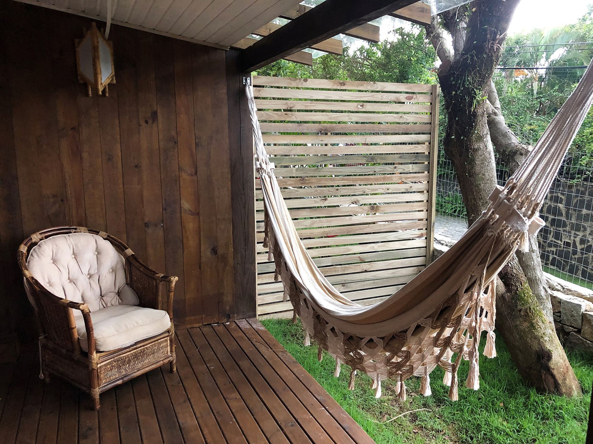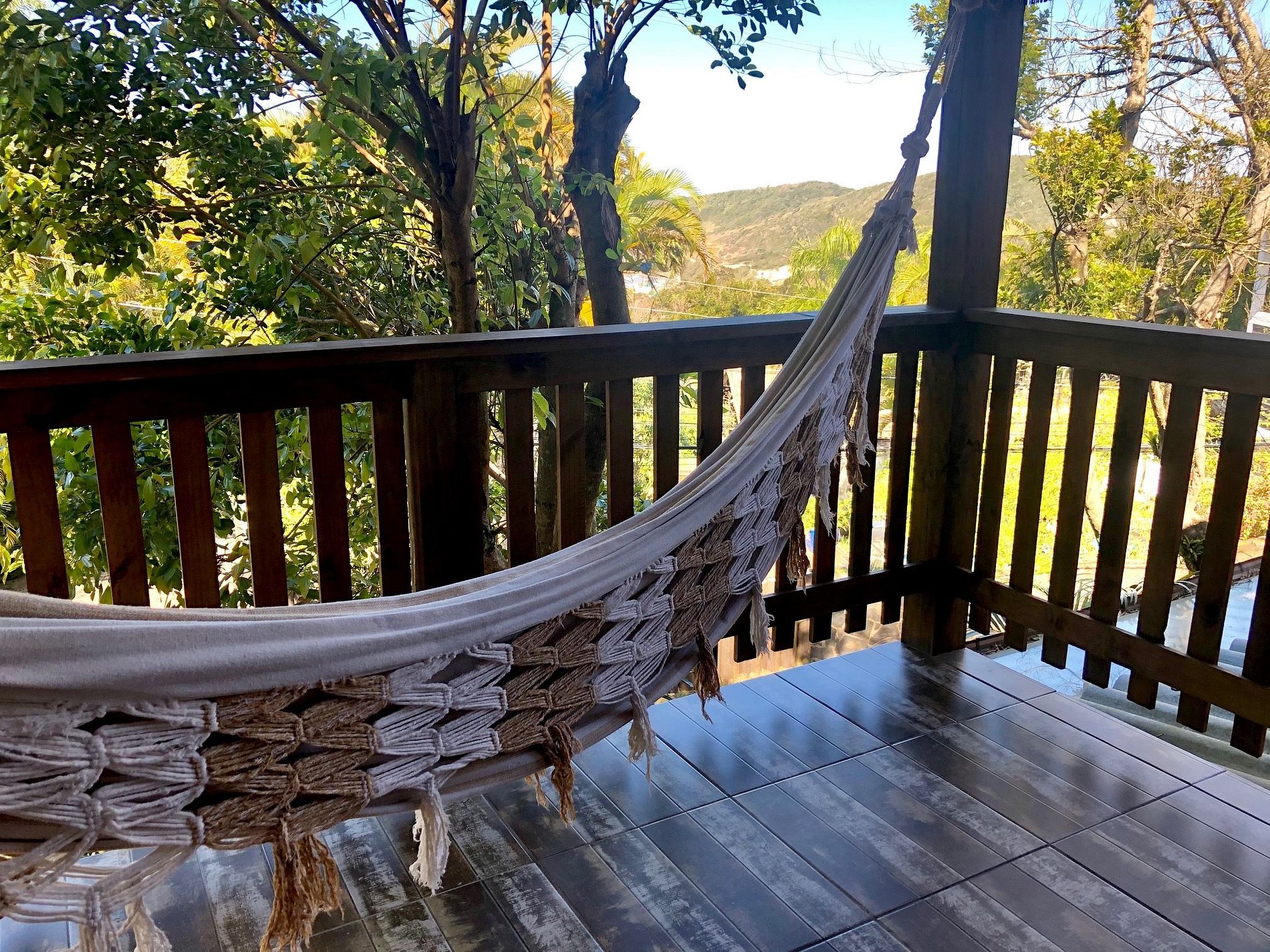 O Studio Tavarua é um duplex pensado para receber exclusivamente casais. No andar superior tem um amplo quarto com varanda com rede e vista para o mar, cama queen size, ar condicionado e TV Smart, e banheiro com banheira de hidromassagem, chuveiro a gás central e secador de cabelos. No térreo tem garagem coberta para o carro, cozinha completa, living e deck com rede e churrasqueira.