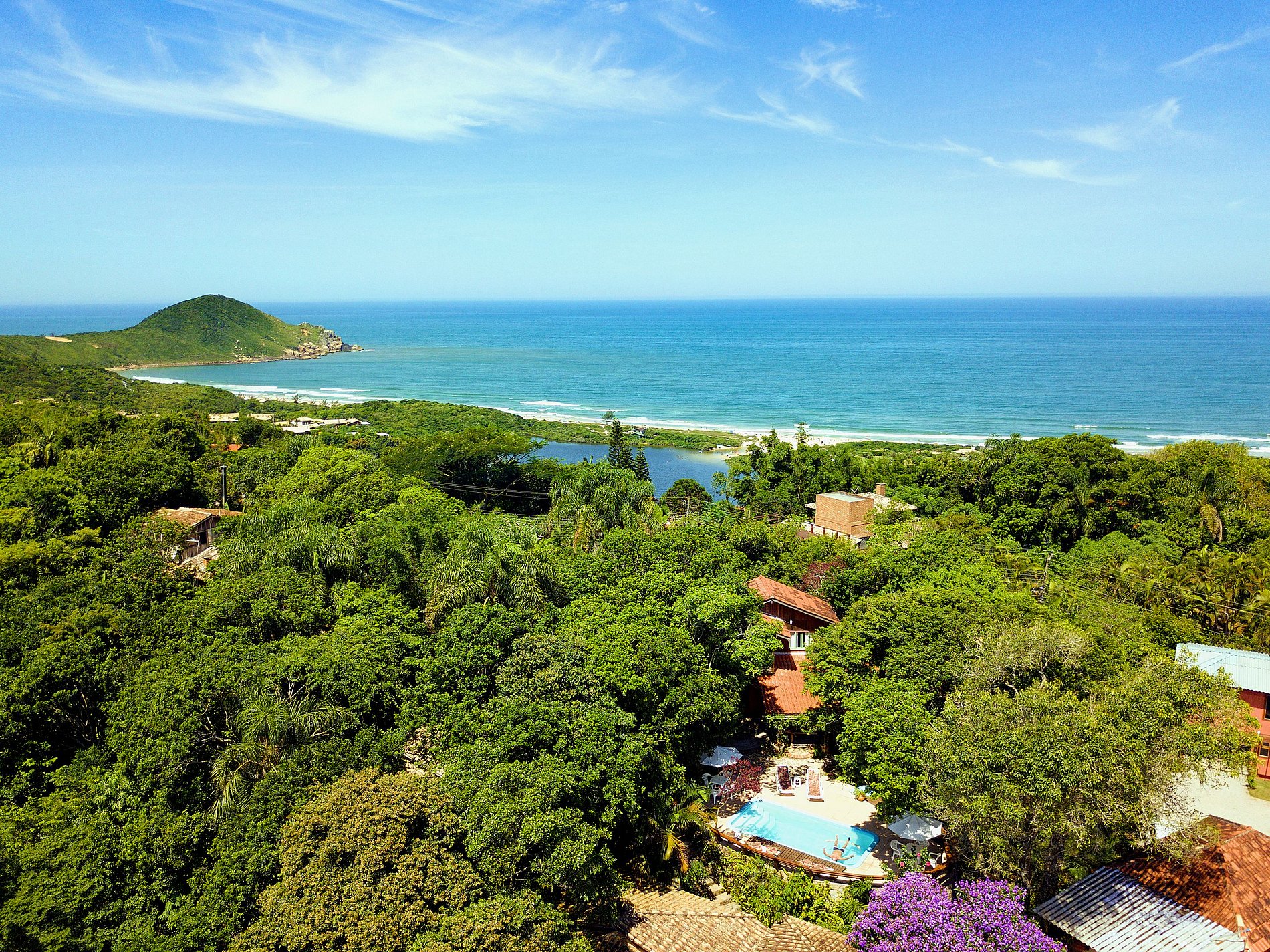 Ocupando area verde de 4000 m² de mata nativa no ponto mais privilegiado da Praia do Rosa, a pousada Studios do Barãio oferece conforto aliado à tranquilidade e serviço caseiro de primeira qualidade.